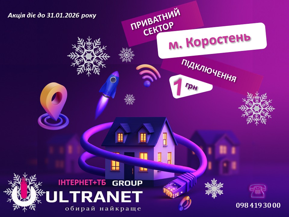 Підключи інтернет у багатоповерхових будинках м.Коростень до 28 лютого за 50 грн/міс.